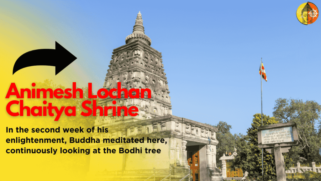 Animeshlochana Chaitya Shrine is a prayer hall (chaitya) located in the north-western part of the Mahabodhi Temple complex. It is said that Buddha spent the second week here in eternal meditation after attaining enlightenment. This chaitya houses a statue of Buddha in which he is seen in a deep meditative state. It is named ‘Animeshlochana’ because it is associated with the legend of his unwavering vision (unblinking eyes).