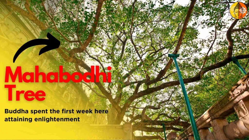 Mahabodhi tree of Bodh Gaya is believed to be a descendant of the same ancient Peepal tree under which Gautam Buddha attained enlightenment. It is said that Buddha meditated under this tree for 49 days without moving and attained self-realisation. This sacred tree is located behind the Mahabodhi Temple complex and is a major pilgrimage site for Buddhist devotees from all over the world.