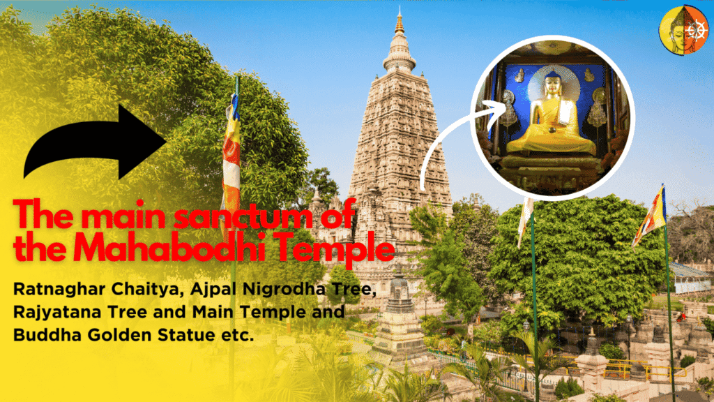 The main sanctum of the Mahabodhi Temple is the centre of rich architecture and spiritual atmosphere. Inside the sanctum sanctorum, a magnificent statue of Lord Buddha is installed in meditation posture, which represents the moment of his enlightenment. The walls and domes of the sanctum sanctorum have carvings and sculptures related to Buddha and Buddhism, which is a characteristic of the medieval architecture of this temple.